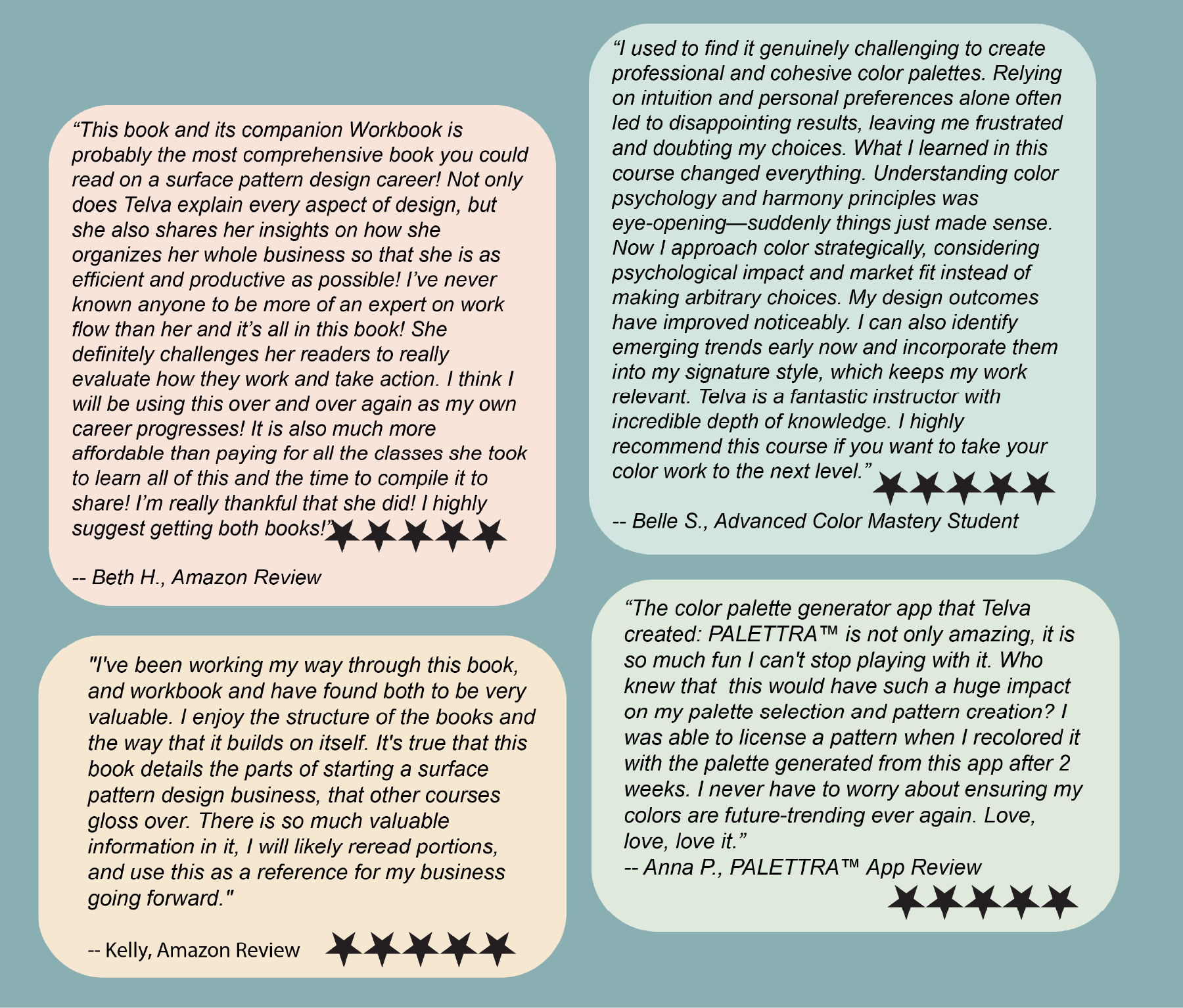 • Author: The Solopreneur's Guide to Surface Pattern Design (Volumes I & II)